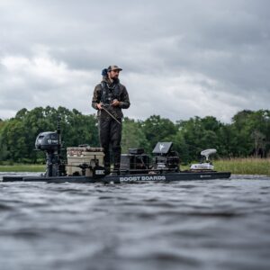 Ausgestattet wie das Boost Fishing Pro, aber mit einzigartiger Farbgebung: tiefes Pinedo Graphite, kombiniert mit einem warmen Black/Toffee Boost Deck. Selbst der Außenbordmotor und der Enginemount wurden in Pinedo Graphite lackiert – für einen Look wie aus einem Guss.