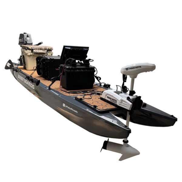 Ausgestattet wie das Boost Fishing Pro, aber mit einzigartiger Farbgebung: tiefes Pinedo Graphite, kombiniert mit einem warmen Black/Toffee Boost Deck. Selbst der Außenbordmotor und der Enginemount wurden in Pinedo Graphite lackiert – für einen Look wie aus einem Guss.