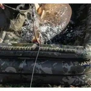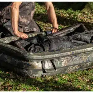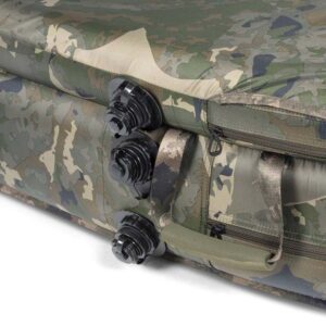 Die Form und der Aufbau machen es unmöglich, dass sich ein Fisch verletzt, wenn er einmal in der Air Cradle liegt. Selbst die größten Karpfen der Welt sind während des Abhakens oder Fotografierens sicher geschützt, egal wie stark sie schlagen. Die Air Cradle besteht aus drei aufblasbaren, ultra-starken Luftkammern. Zwei davon schützen den Fisch vor Bodenkontakt, während die obere Kammer für eine sichere Auflagefläche für das Abhaken und Fotografieren sorgt.