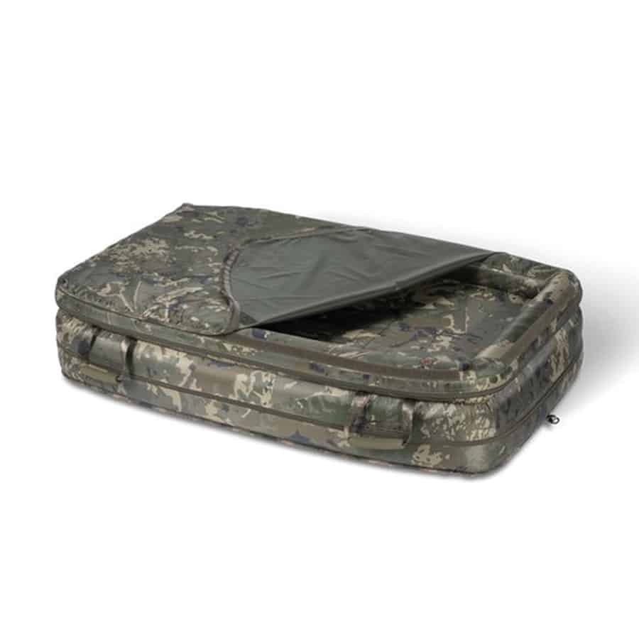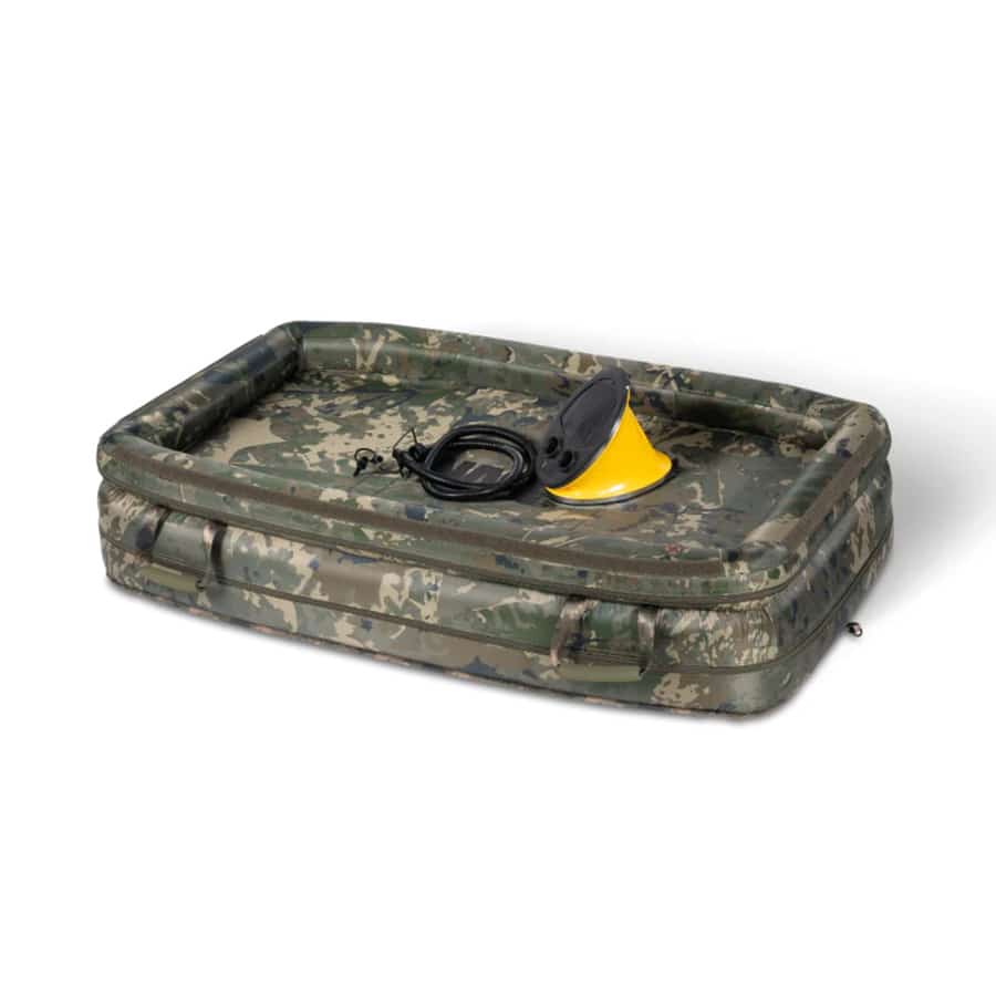 Die Form und der Aufbau machen es unmöglich, dass sich ein Fisch verletzt, wenn er einmal in der Air Cradle liegt. Selbst die größten Karpfen der Welt sind während des Abhakens oder Fotografierens sicher geschützt, egal wie stark sie schlagen. Die Air Cradle besteht aus drei aufblasbaren, ultra-starken Luftkammern. Zwei davon schützen den Fisch vor Bodenkontakt, während die obere Kammer für eine sichere Auflagefläche für das Abhaken und Fotografieren sorgt.