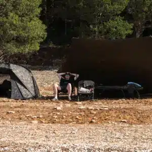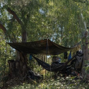 - Passe die Spannung aller Abspannseile an, bis du die richtige Position des Tarp erreicht hast.