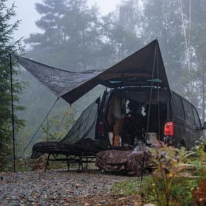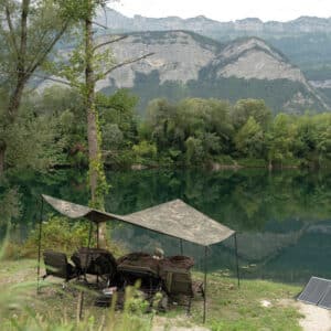 Schnell zu errichten, einfach und vielseitig bietet das Multi Tarp zahlreiche Möglichkeiten zum Schutz vor Witterungseinflüssen, egal ob unerwartete Schauer oder extreme Hitze. Perfekt für Roadtrips, Socials und Off Grid Abenteuer. Das Multi Tarp kann mit Fahrzeugen verwendet werden, an Bäumen fixiert werden und an anderen Strukturen oder Sheltern angebracht werden, um in fast jeder Umgebung Schutz zu bieten. Geliefert mit zwei vierteiligen Stützstangen, die in eine größere Anzahl kürzerer Stützen aufgeteilt werden können, um mehr Flexibilität in der Form zu erhalten.