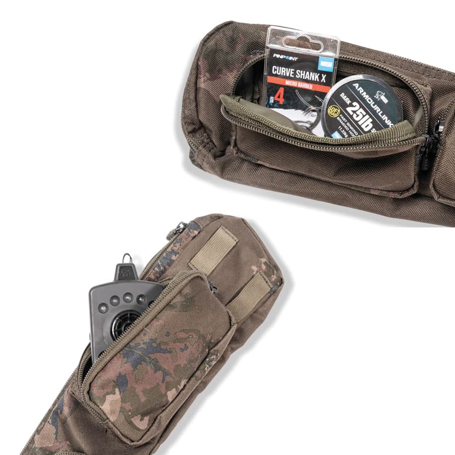 - Vier externe Reißverschlusstaschen für Tackle, Köder und Zubehör