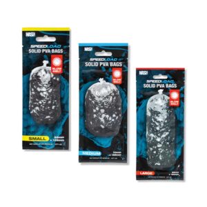 Verschiedene PVA Bag Größen, welche zusammen mit dem Speedload System verwendet werden können. Erhältlich in drei Größen und in zwei verschiedenen Varianten. Einmal als schnell und einmal als langsam auflösend. Je nach Witterung und Tiefe des Gewässers einsetzbar.