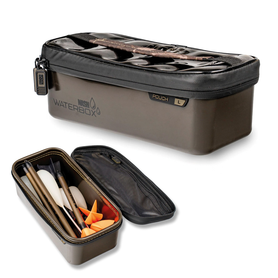 Erhältlich in fünf sorgfältig ausgewählten Größen, bieten Subterfuge Waterbox Pouches zuverlässigen Schutz und flexible Organisation für alles, von Tackle und Ködern bis hin zu Technik und Kleidung.