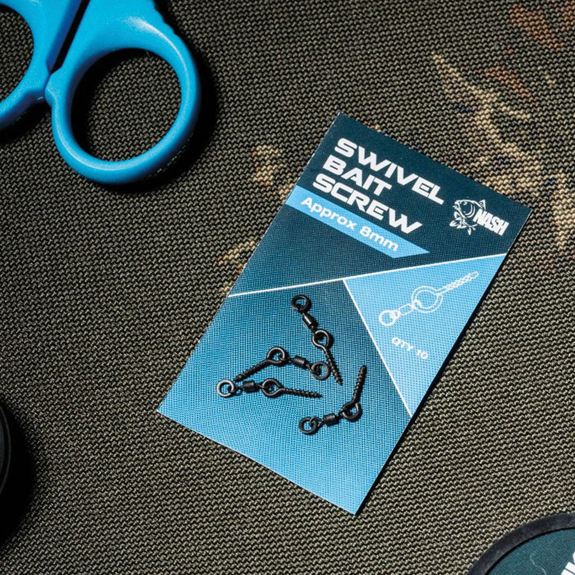 Mit Gewinde versehene Kunststoff-Köderschrauben, um damit Boilies, Pop-Ups, Nüsse, Schaum- und Plastikköder anzuschrauben statt mit einer Nadel zu durchstechen. Der Köder kann so rasch gewechselt werden.