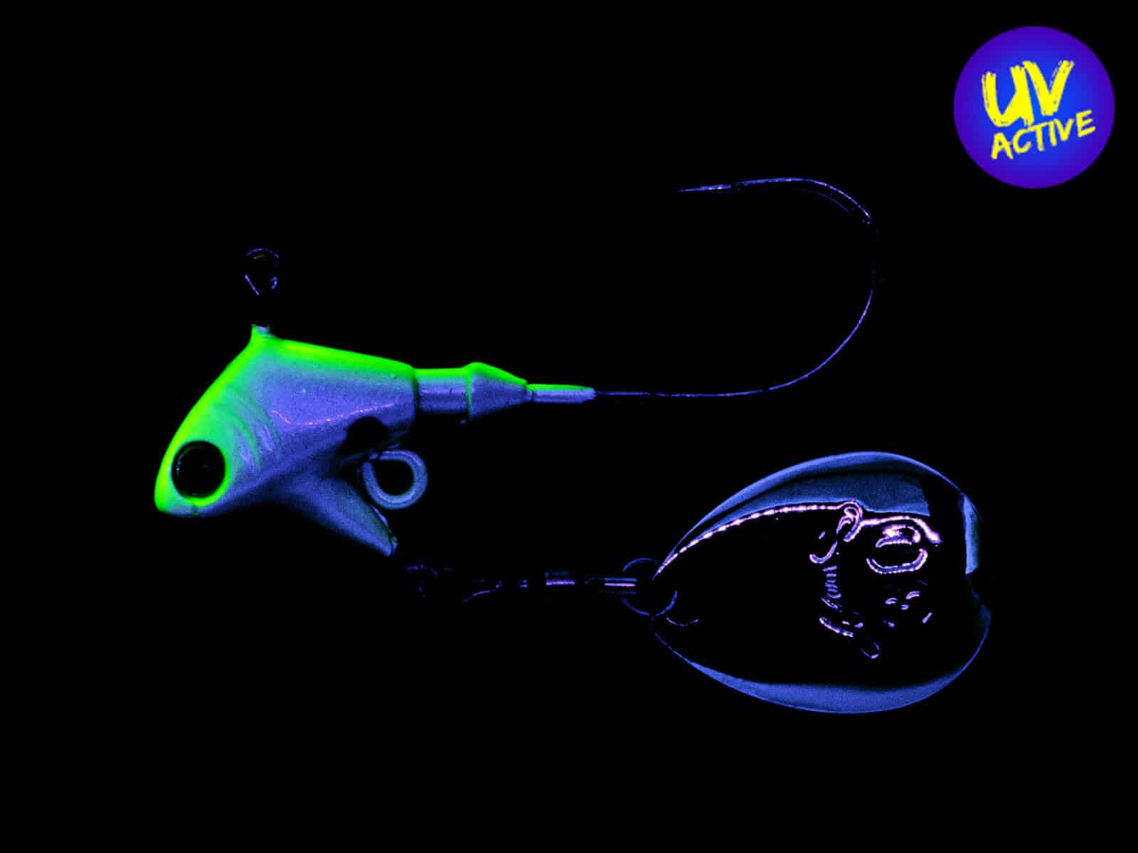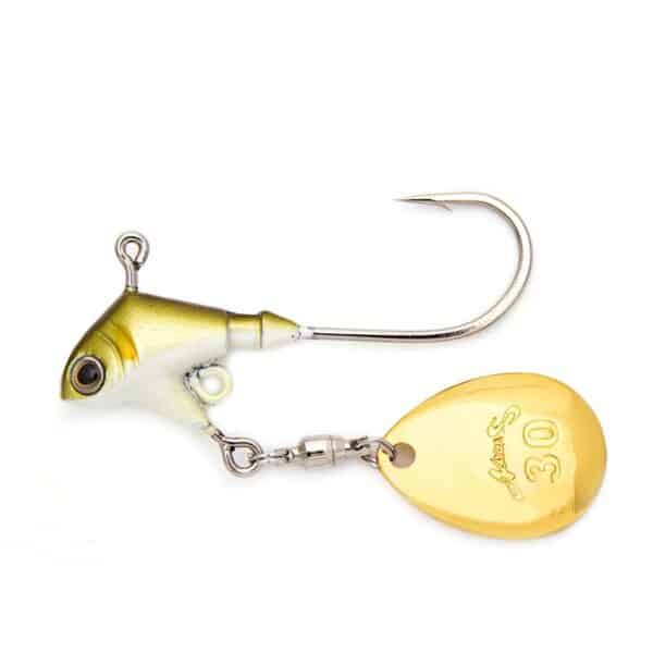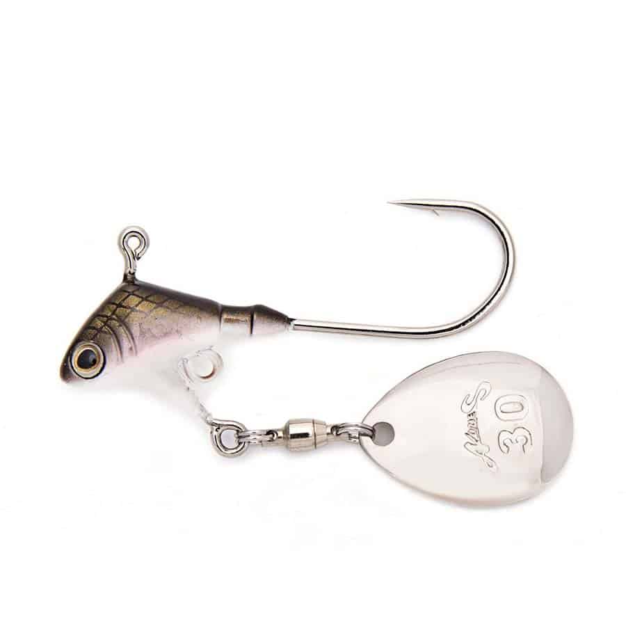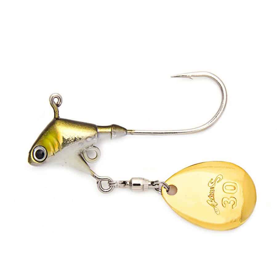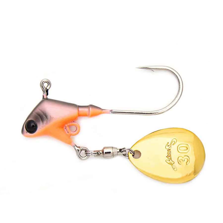 Der 10g PRORIGSPIN Jig (Colorado Blade) von Nories eignet sich sehr gut, um z.B. Barsche in verschiedenen Tiefen im Mittelwasser zu suchen. Als Trailer empfehlen wir Gummifische oder Pintails mit 9 – 12 cm Länge. Die spezielle Kopfform des PRORIGSPIN in Kombination mit dem Colorado Spinnerblatt verleihen dem Gummiköder zusätzliche Aktion und sorgen so schnell für Aufmerksamkeit bei den Räubern! Es ist möglich, einen kleinen Drilling Gr. 6 oder Gr. 8 in der unteren Öse mit einem Sprengring zu befestigen.