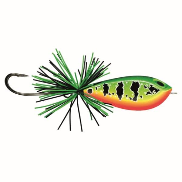 Hergestellt aus reaktionsschnellem Balsa und umgeben von einer starken Copolymer-Hülle, wird der BX Skitter Frog mit seiner extra widerstandsfähigen Haut Ihnen helfen, raubgierige Raubtiere immer wieder zu landen. Der nach oben gebogene, robuste VMC® Doppelhaken und der dicke Gummirock ermöglichen präsentationsfreies Angeln.