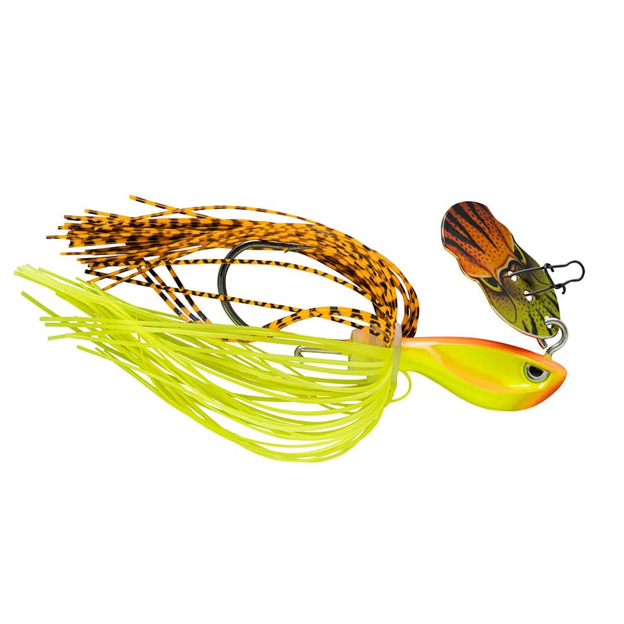 Der Rap-V Perch Bladed Jig kombiniert Elemente aus verschiedenen Ködern und verschmilzt sie zu einem sensorischen Totalangriff auf unsere Barsche! Ausgestattet mit einem geschweißten Silikon-Skirt und einem einzigartig bedruckten und sehr hängerarmen Blade, läuft dieser Köder mit unwiderstehlichem Blitzen und Vibrationen, denen kein Barsch widerstehen kann. Der vielseitige und einfach zu fischende Rap-V Perch Bladed Jig ist in so gut wie jeder Situation effektiv. Die Konstruktion des Köders ermöglicht die Verwendung eines Trailers für ein größeres Köderprofil.